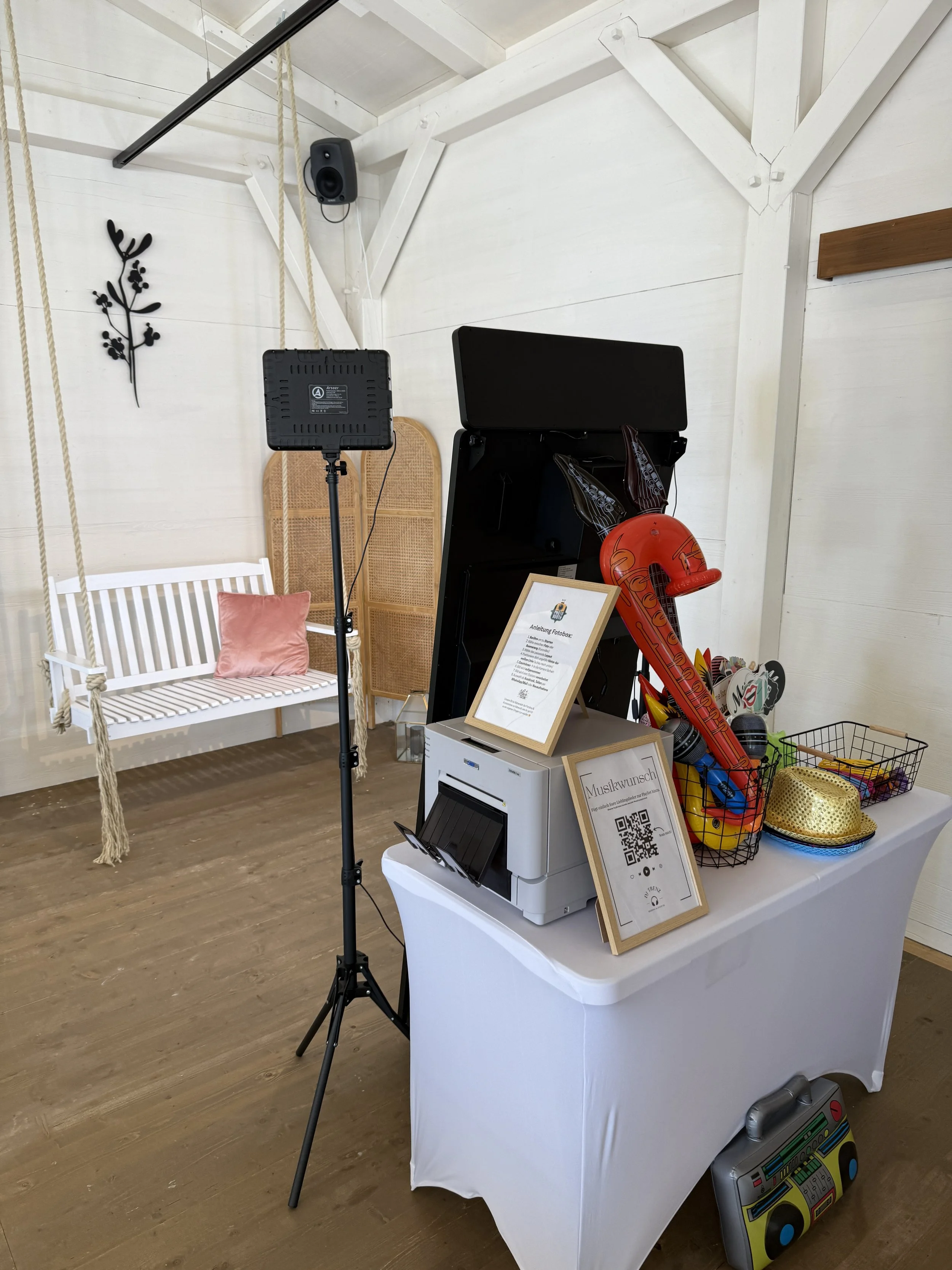 Die Fotobox ist selbsterklärend. Auf Wunsch stellen wir eine Betreuung (gegen Aufpreis) – ideal für größere Events & Feiern.
