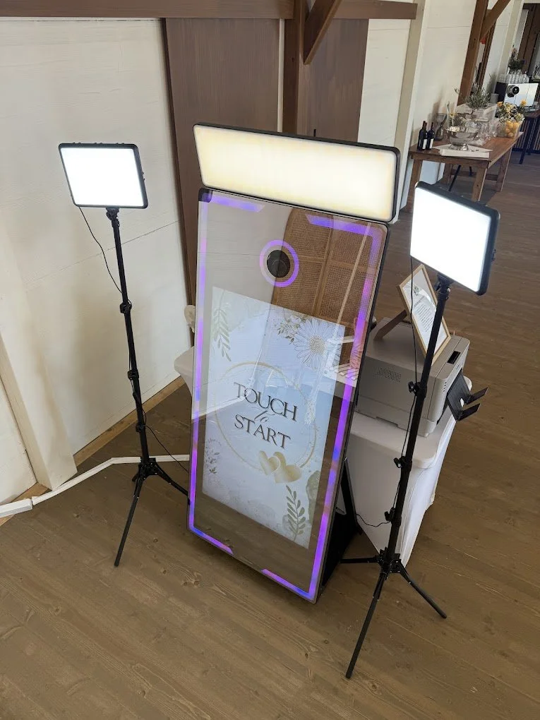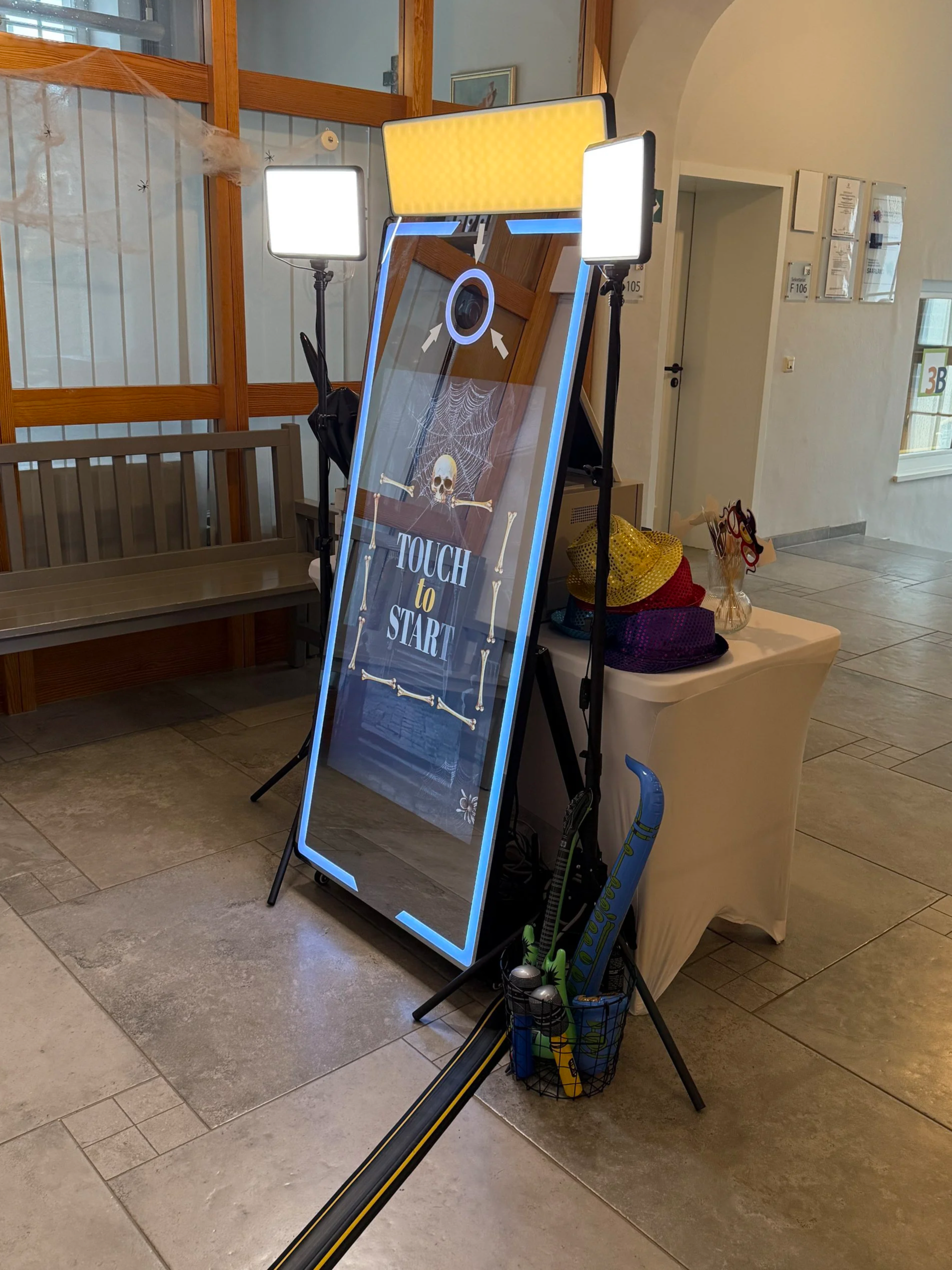 Der 65" Magic Mirror ist Eyecatcher und Erinnerungsmaschine in einem: elegantes Spiegel-Design, das sich stilvoll in jede Location einfügt – und Technik auf Profi-Niveau für gestochen scharfe Bilder und echte „Wow“-Momente. Gäste posieren wie vor einem Ganzkörperspiegel, die Aufnahmen sehen sofort hochwertig aus und wandern direkt als Print in die Hände. Unterhaltung, die bleibt – auf Fotos und im Kopf.